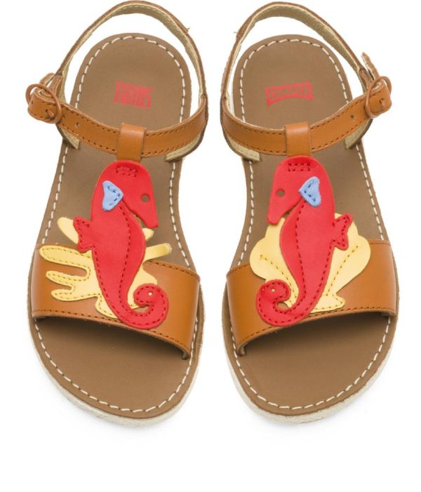 Multicoloured TWINS sandal for girls. Red, yellow and blue 100% leather upper. 100% white rubber outsole.
