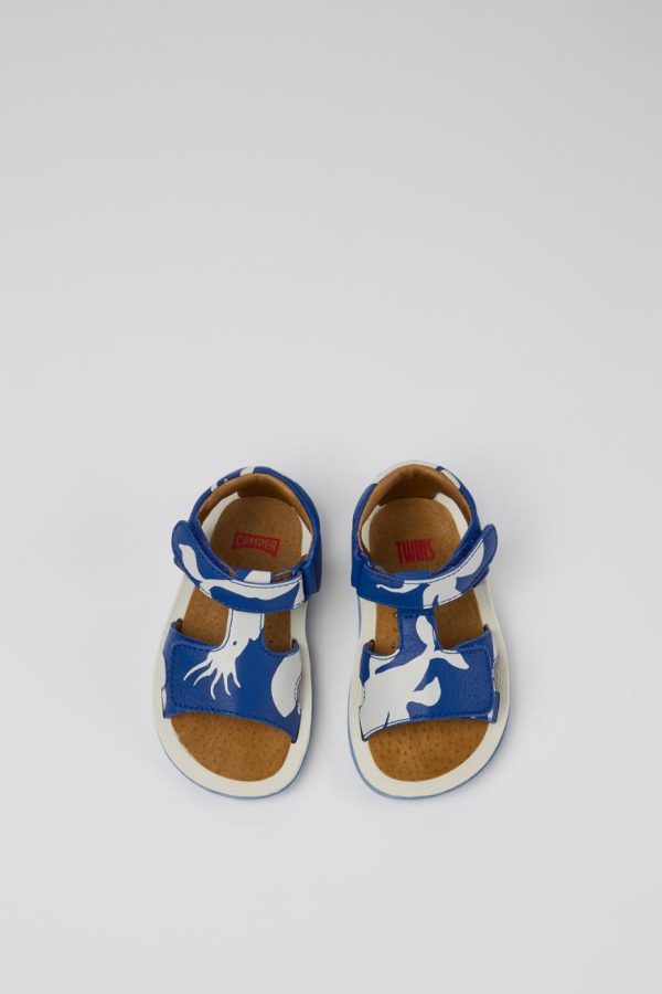 Multicolored leather kids’ sandals with hook-and-loop closures, chrome-free leather-lined footbeds and rubber outsoles.