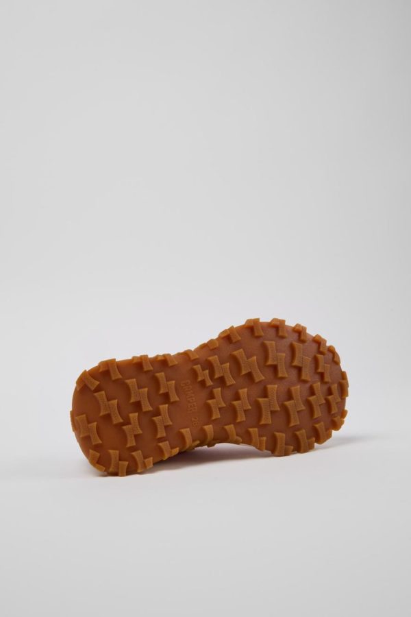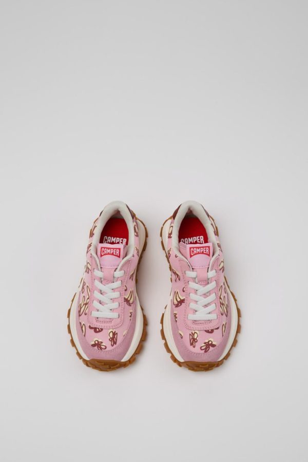 Multicolored recycled PET and nubuck kids’ sneaker with OrthoLite® Recycled™ footbed, elastic laces, EVA midsole and rubber outsoles.