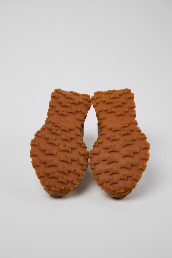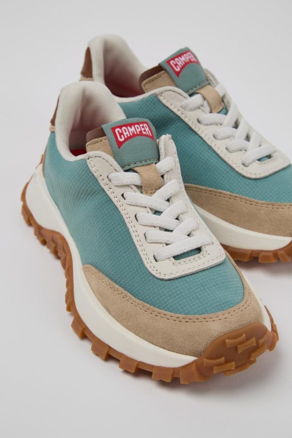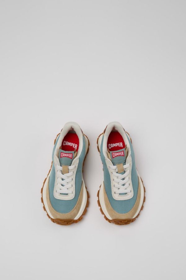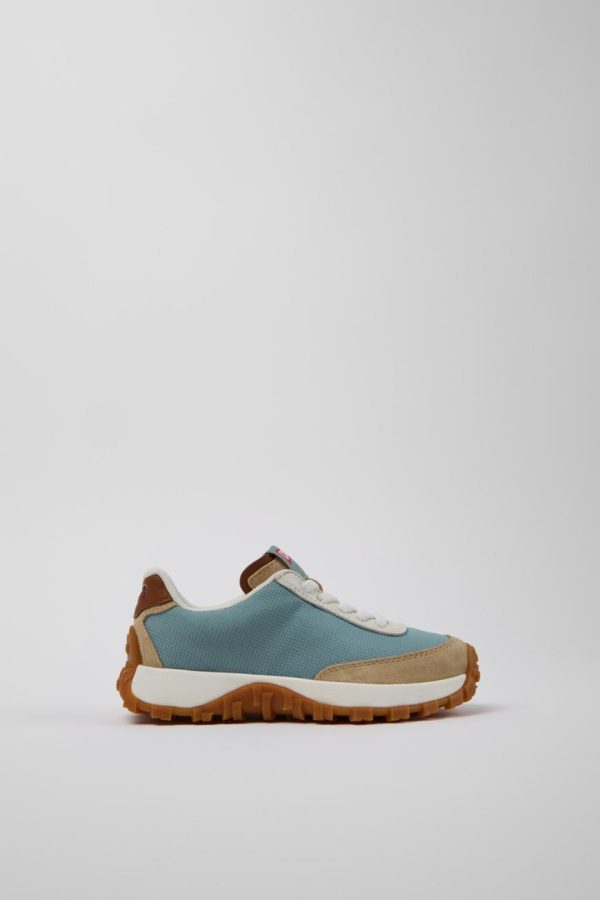 Multicolor recycled PET and nubuck kids’ sneaker with OrthoLite® Recycled™ footbed, elastic laces, EVA midsole and rubber outsoles.