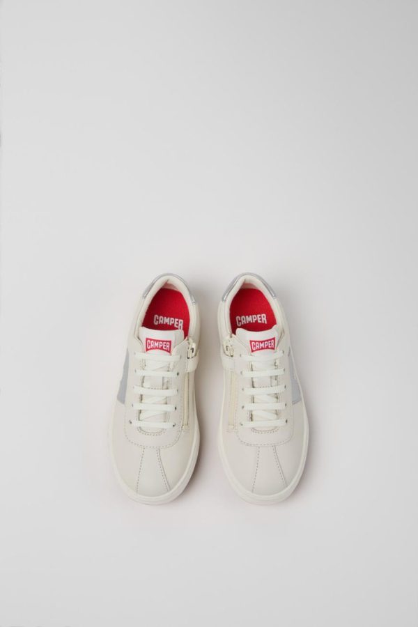 Multicolor calfskin leather kids’ sneakers with OrthoLite® Recycled™ footbeds and rubber outsoles.