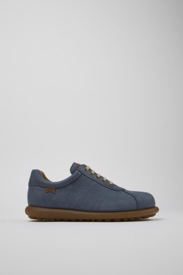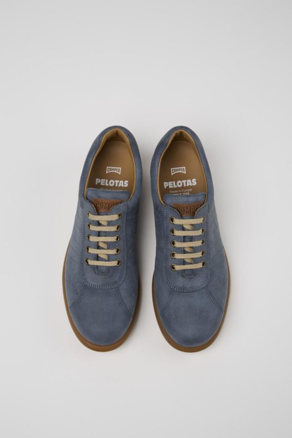 Blue nubuck men’s Oxford sneakers with lace closures, odor-controlling PU footbeds, and 100% rubber outsoles.