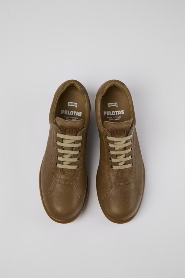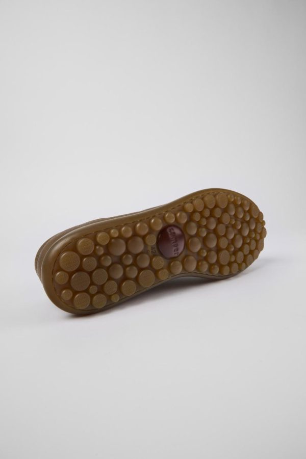 Pelotas Ariel is our most iconic Camper style. With an unmistakable, sport-inspired outsole comprised of 87 spheres, each pair is handcrafted from European leathers that is 360º stitched to the original rubber outsole.