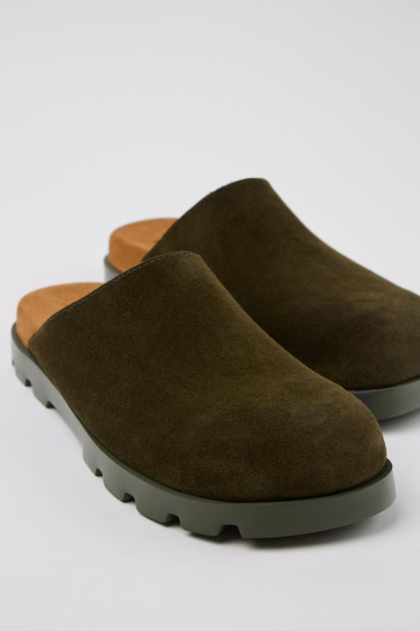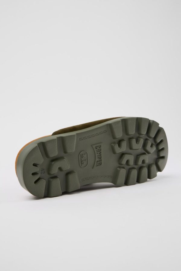 Green nubuck men’s sandals with PU footbed and XL EXTRALIGHT® EVA outsoles.