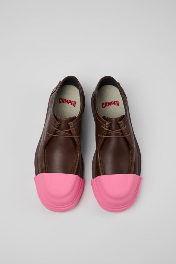 Brown calfskin leather shoes for men with OrthoLite® Recycled™ footbeds and rubber outsoles and Toe Cap (23% recycled).