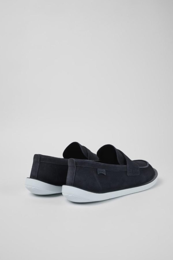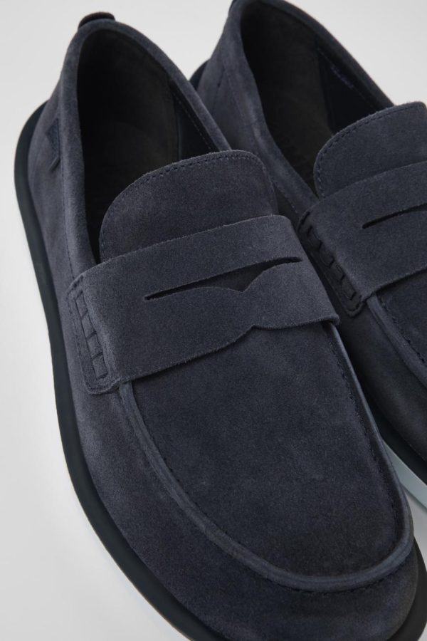 Blue nubuck men’s moccasins with lace closures, leather linings, cushioning recycled OrthoLite® footbeds, and XL EXTRALIGHT® EVA outsoles.