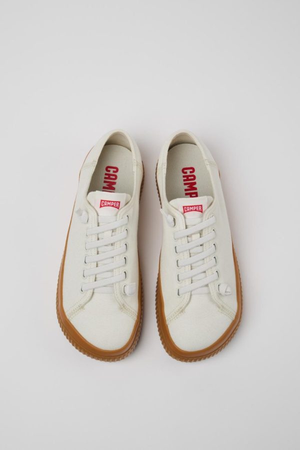 White TENCEL™ Lyocell men’s sneakers with OrthoLite® Recycled™ footbeds, elastic laces, and rubber outsoles.