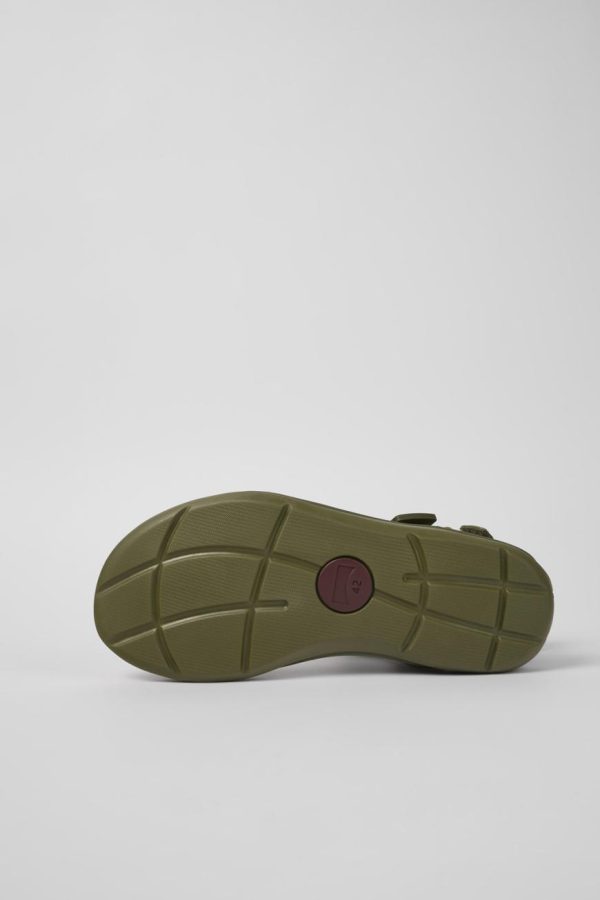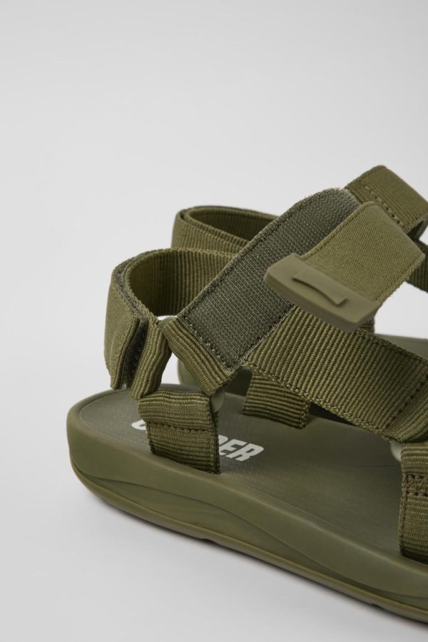Multicolored men’s sandals with recycled polyester, ankle straps, and EVA/rubber outsoles.