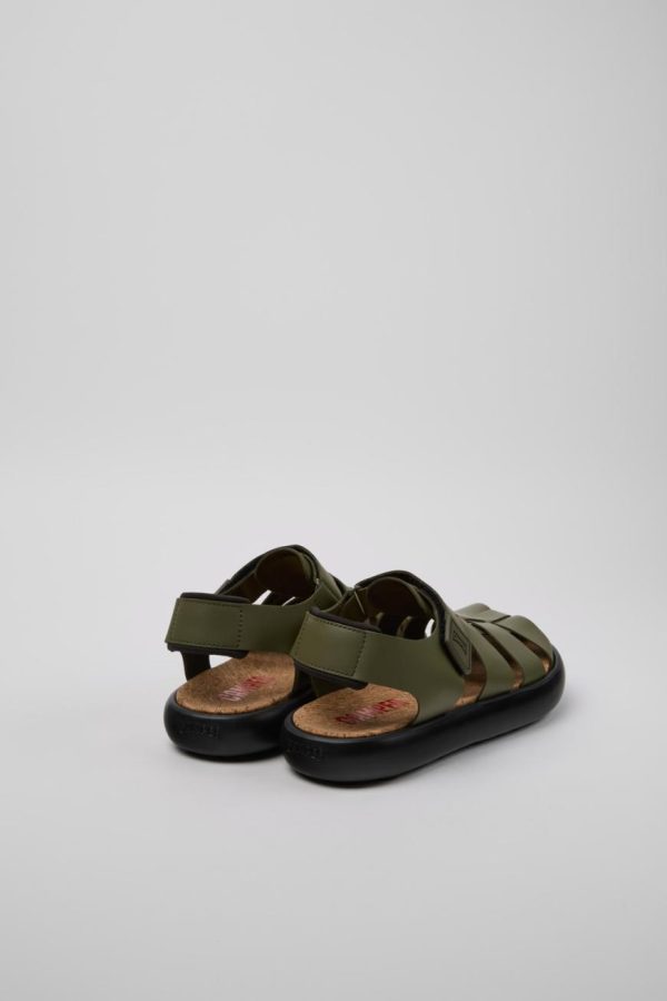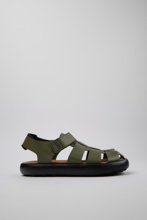 Green calfskin leather men’s sandals with EVA footbeds, hook & loop system, and XL EXTRALIGHT® OrganixTM 3.0 outsoles (30% biocircular components).