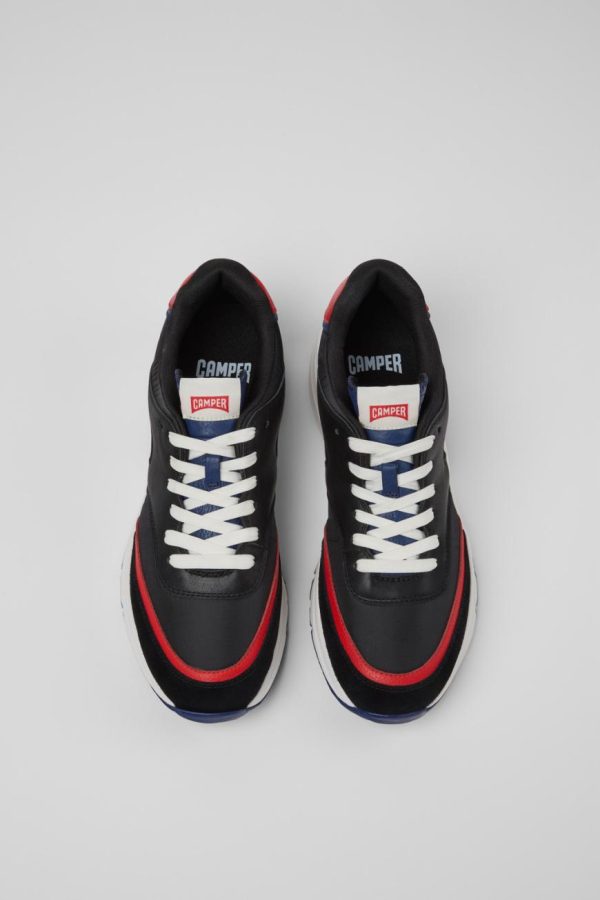 Multicolor textile and leather men’s sneakers with PU footbeds and EVA and rubber outsoles (30% recycled).