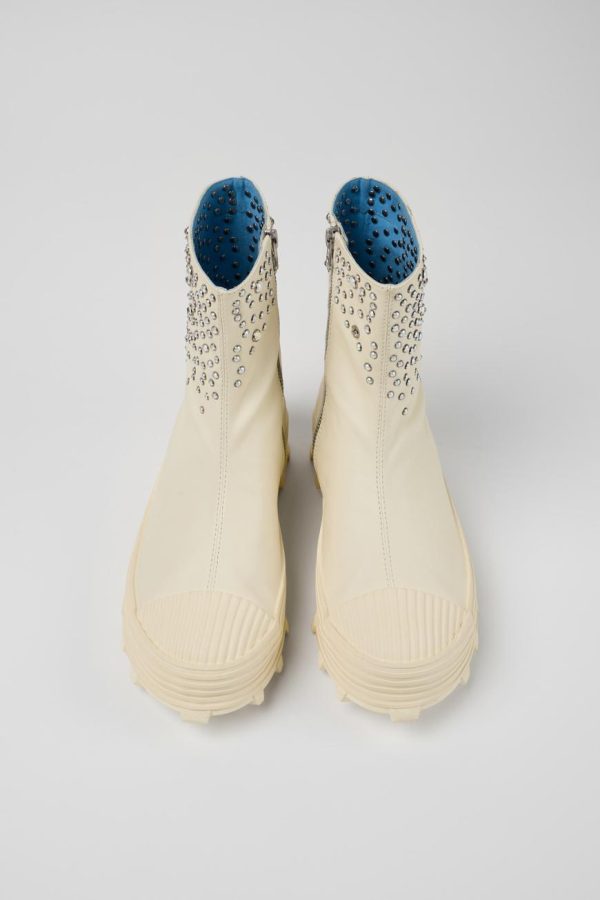 These white leather Traktori boots were customized by Swarovski in celebration of the sea.