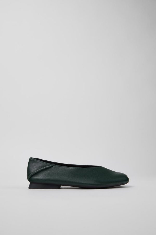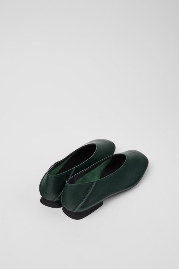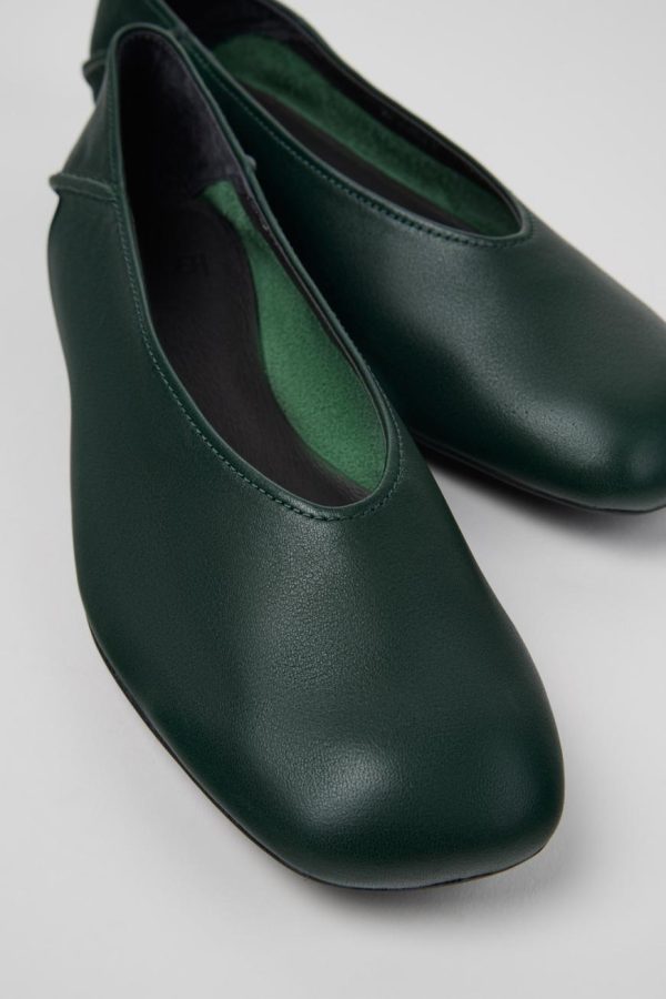 Green calfskin leather ballerina shoes for women with OrthoLite® Recycled™ footbeds and TPU outsoles (20% recycled).