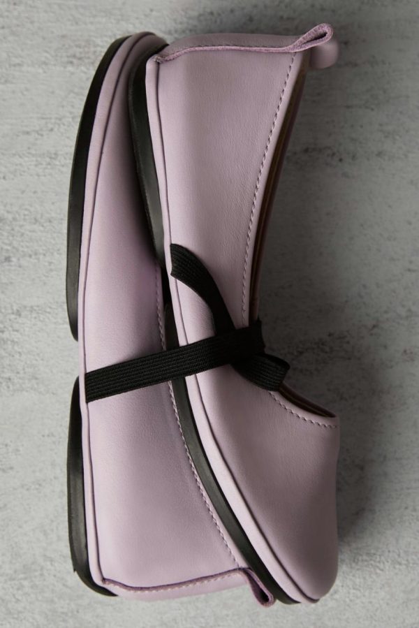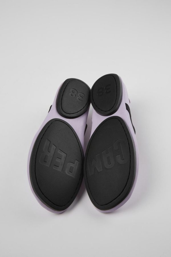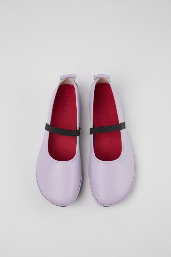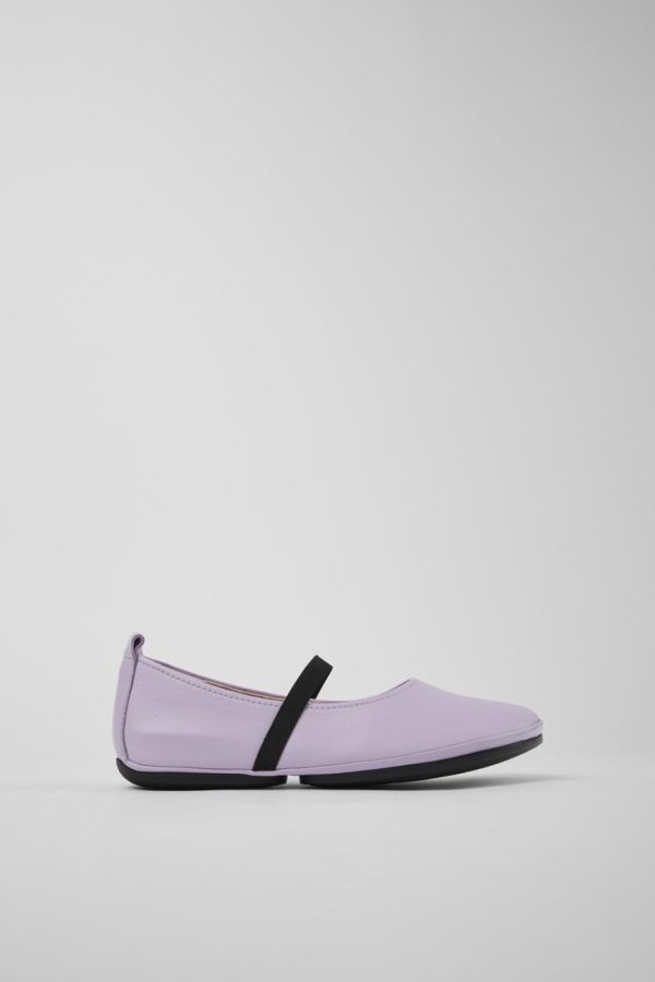 Purple leather women’s Mary Janes with EVA removable footbeds and rubber outsoles (20% recycled).
