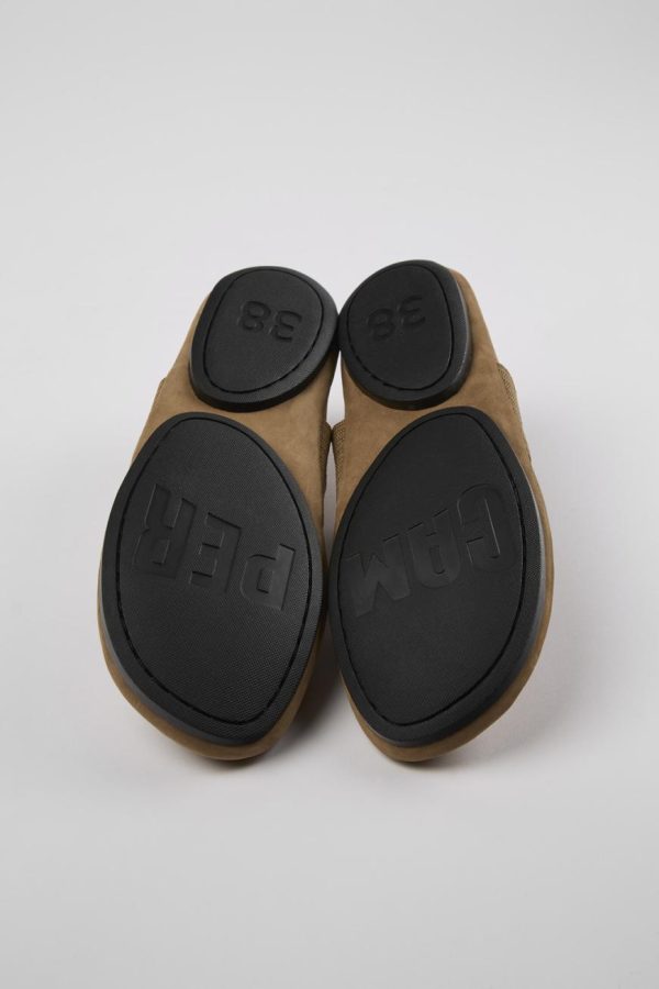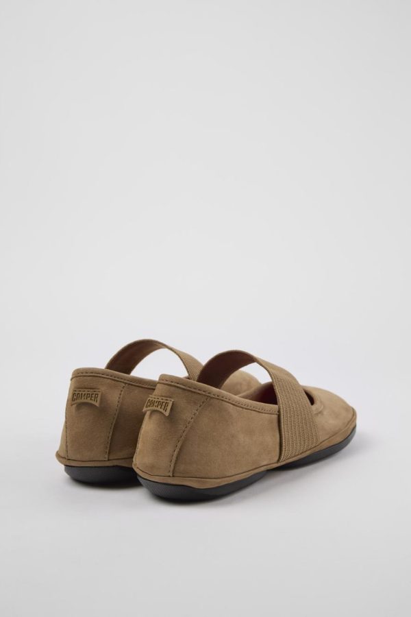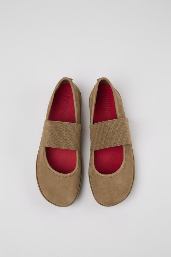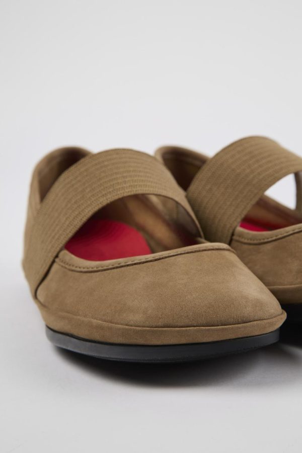 Brown nubuck women’s Mary Janes with EVA footbeds and rubber outsoles.