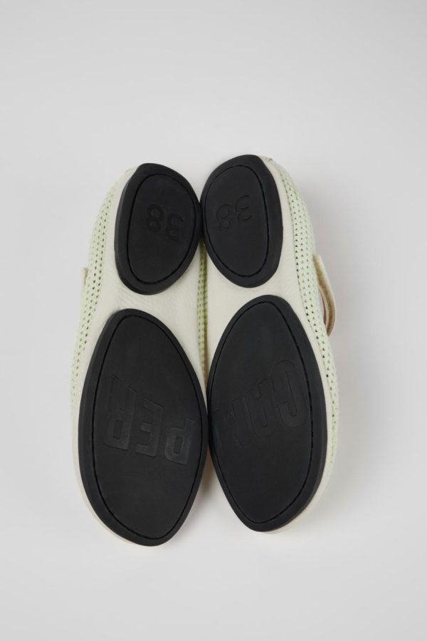 Multicolor TENCEL® Lyocell mesh and leather women’s ballerina with EVA footbed, hook & loop system, and recycled rubber outsoles (20% recycled).