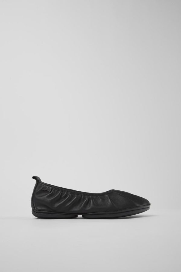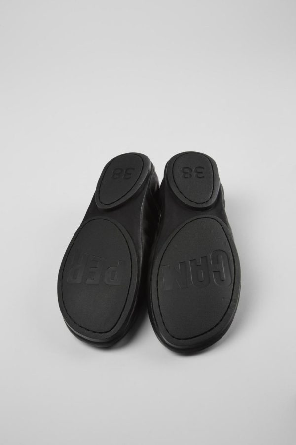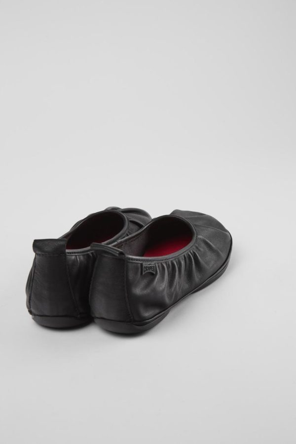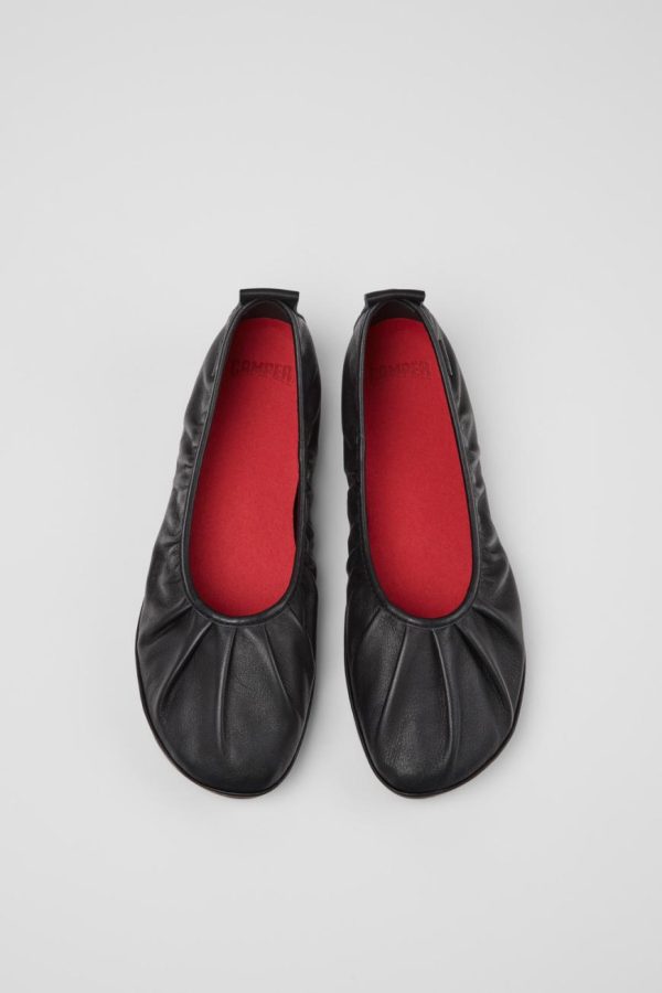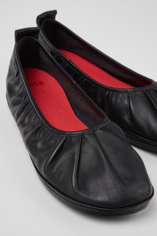 Black calfskin leather ballerinas for women with EVA footbeds and rubber outsoles.