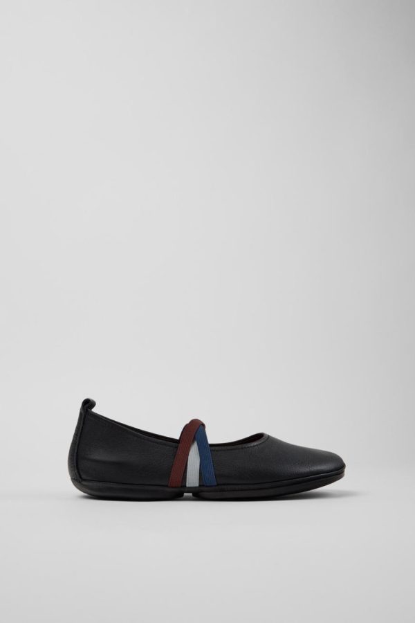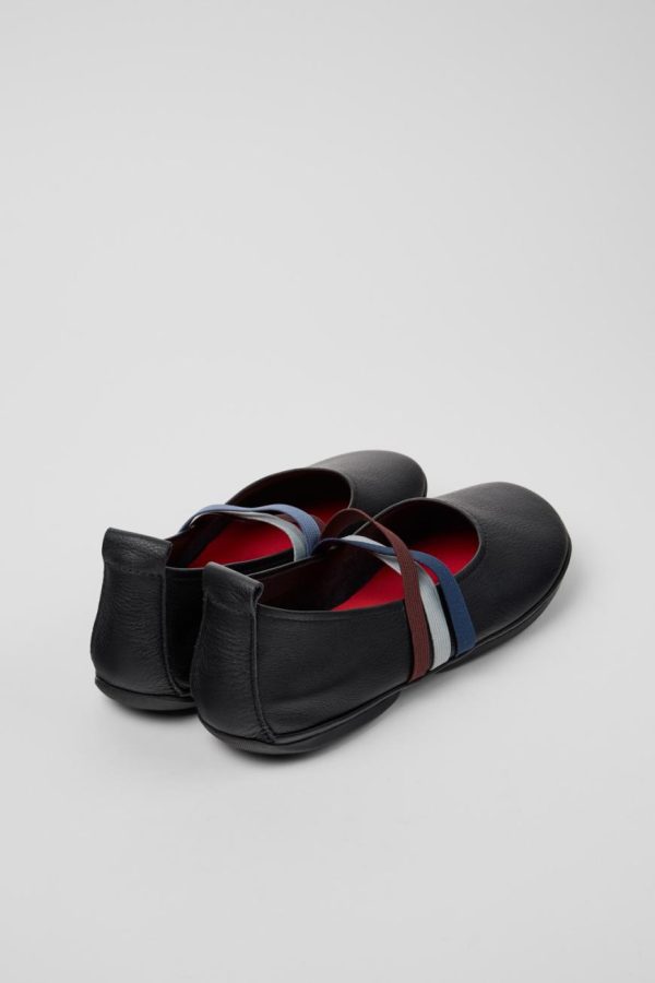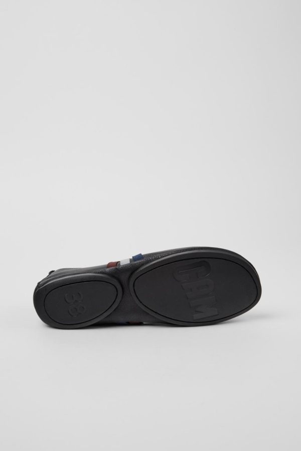 Black calfskin leather ballerina shoes for women with EVA footbeds and rubber outsoles.