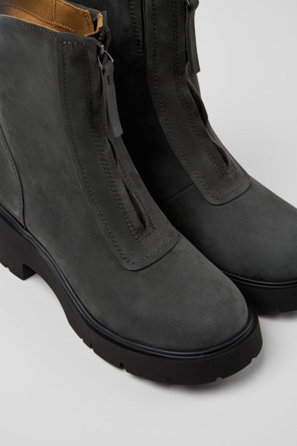 Gray nubuck women’s mid boots with OrthoLite® Recycled™ footbed and EVA outsole.