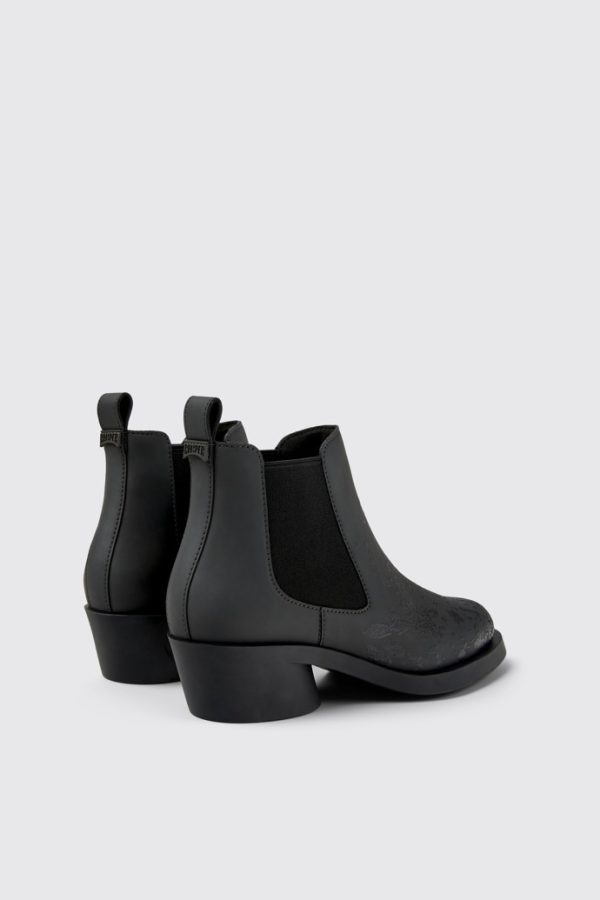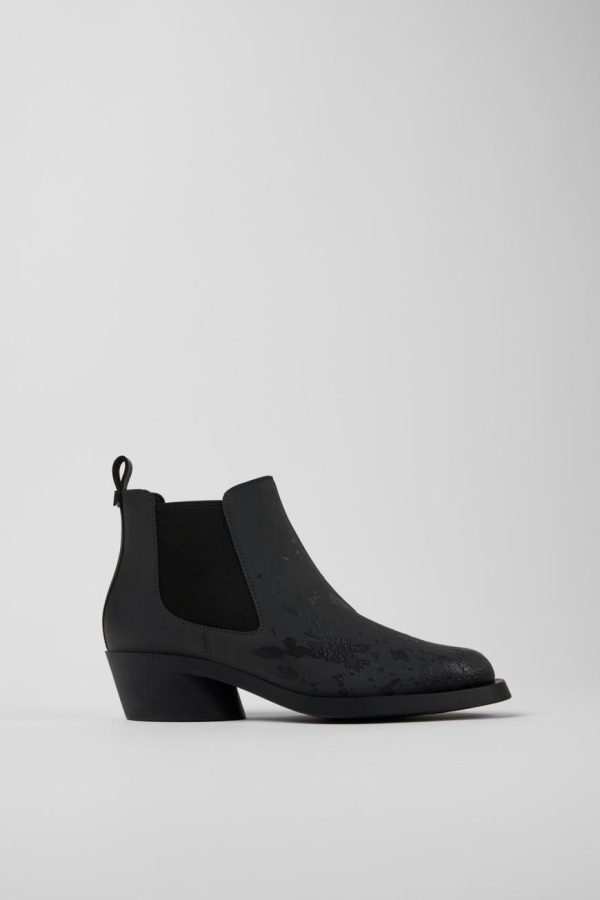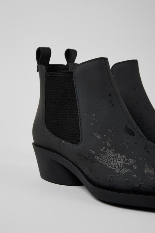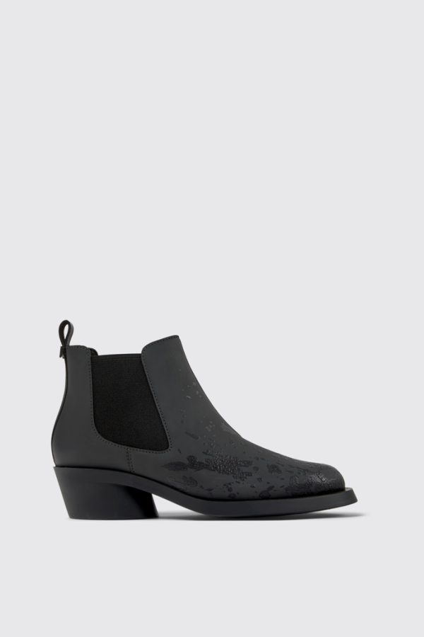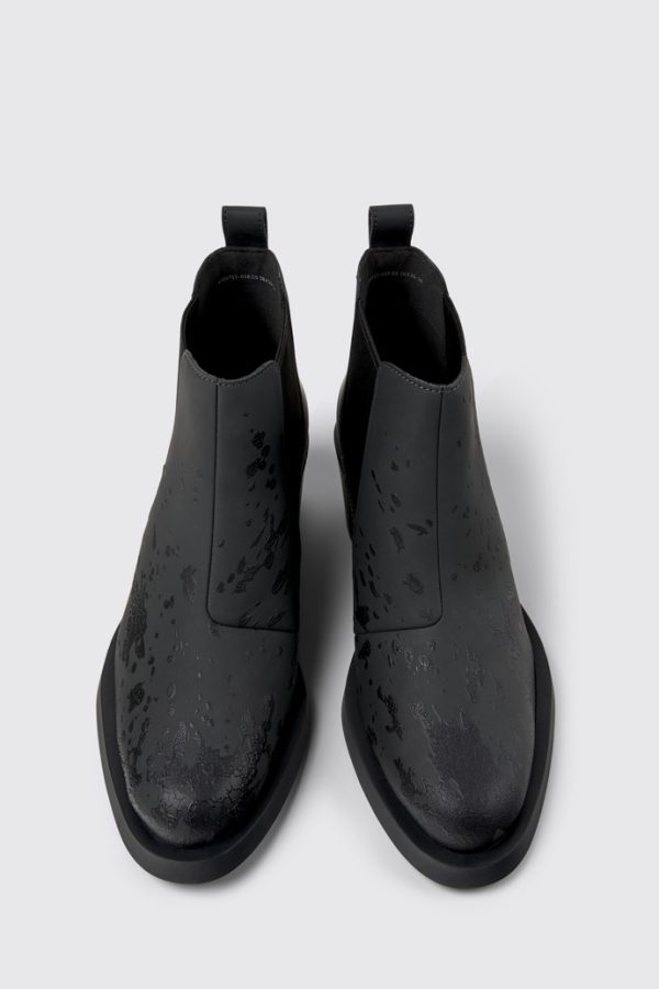 Gray and black leather women’s ankle boots with OrthoLite® footbeds and rubber outsole (20% recycled).