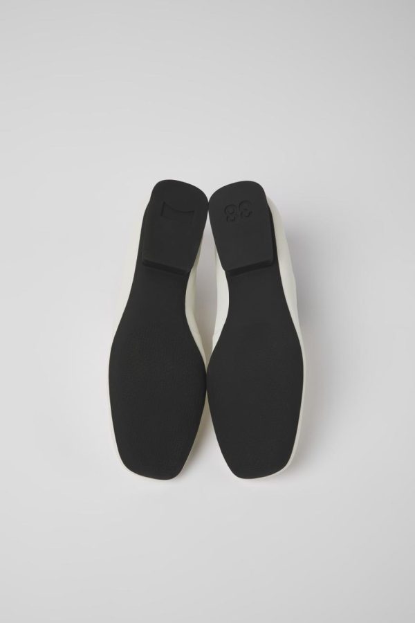 White leather women’s shoes with OrthoLite® Recycled™ non-removable footbeds and TPU outsoles (20% recycled).