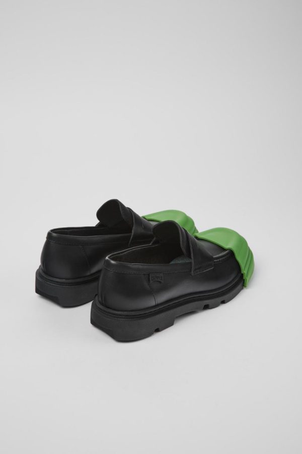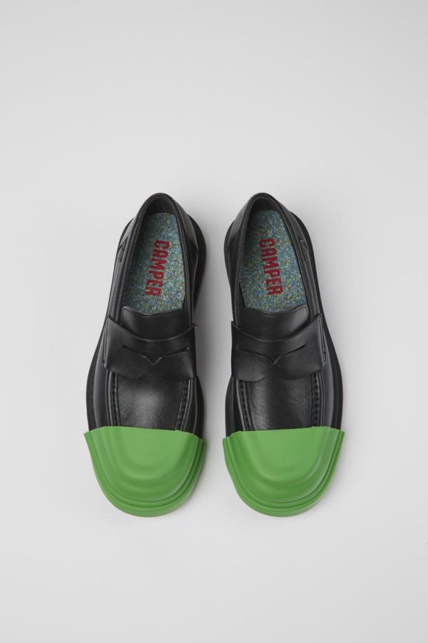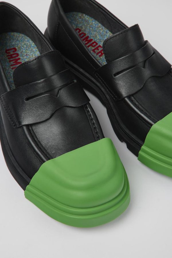 Black women’s customizable loafers with responsibly raised leather, recycled OrthoLite® footbeds, and rubber outsoles.