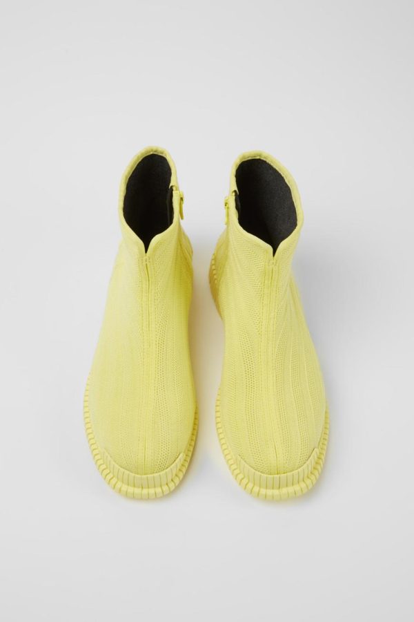 Yellow women’s ankle boots with TENCEL™ Lyocell uppers and EVA outsoles.