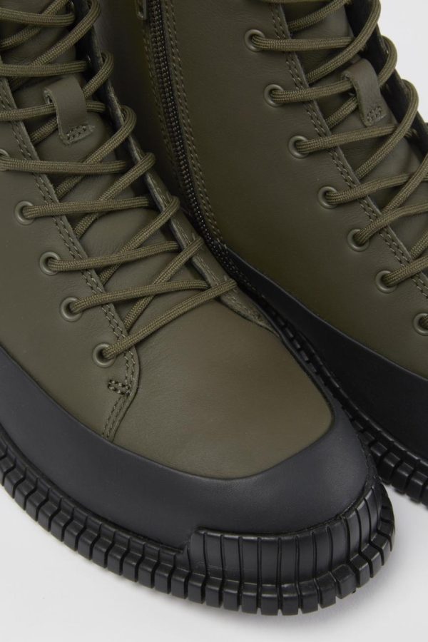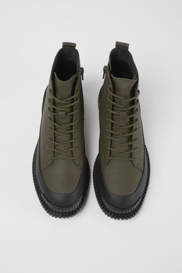Green and black leather women’s ankle boots with XL EXTRALIGHT® Outsole and recycled OrthoLite® footbed.
