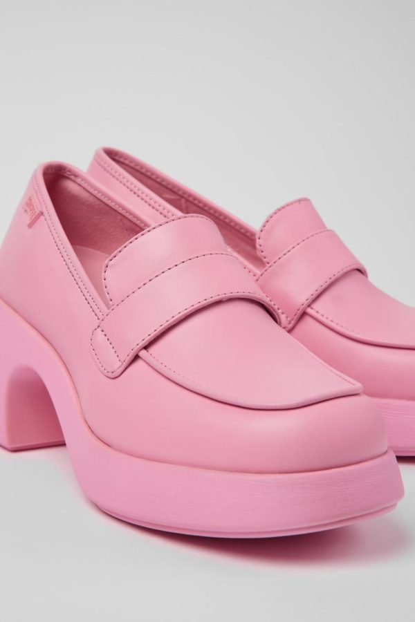 Pink leather women’s loafers with recycled polyester linings, EVA footbeds, and XL EXTRALIGHT® EVA outsoles.