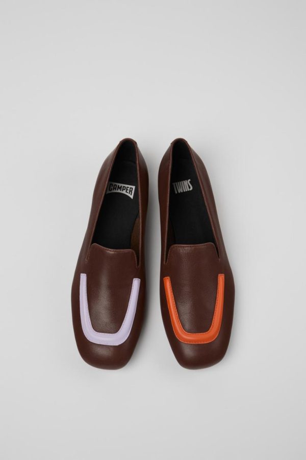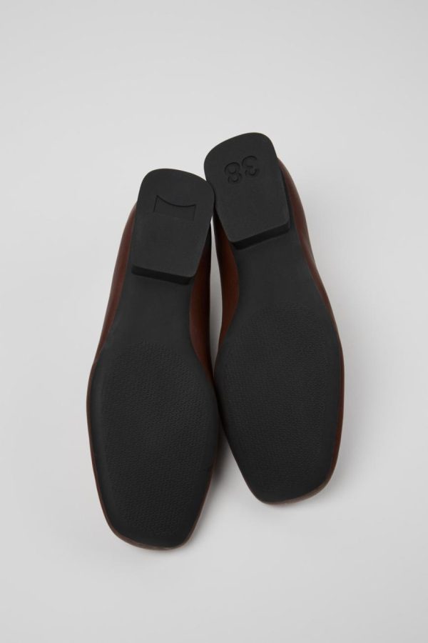 Brown leather women’s ballerina flats with OrthoLite® Recycled™ footbeds and TPU outsoles (20% recycled).