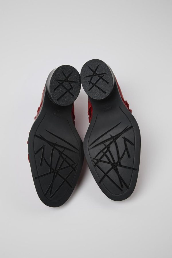 Red leather women’s shoes with OrthoLite® footbeds and rubber outsole (20% recycled).