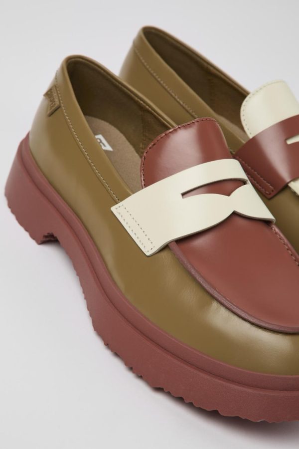 Multicolored leather women’s loafers with leather & recycled polyester linings, recycled OrthoLite® footbeds, and 100% rubber outsoles.