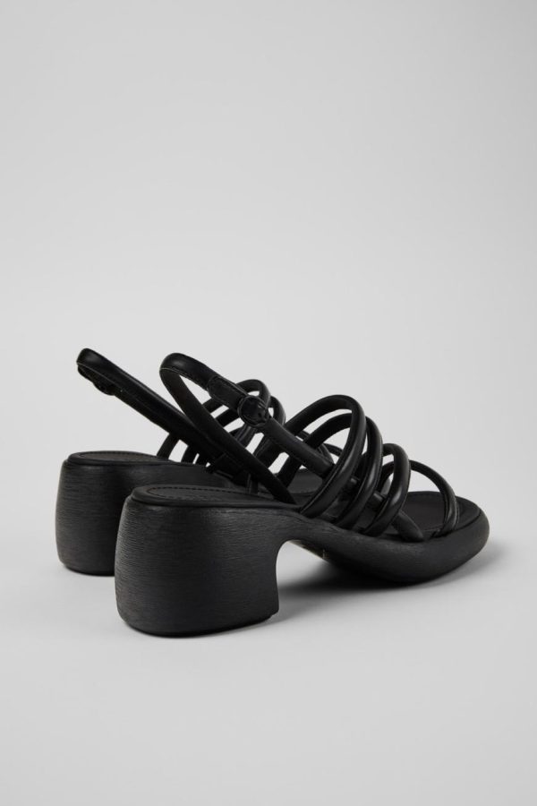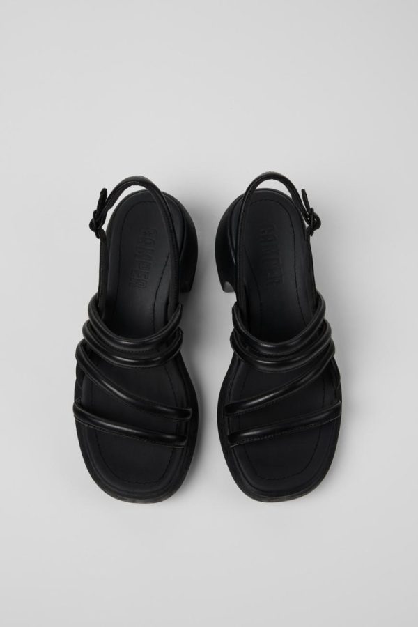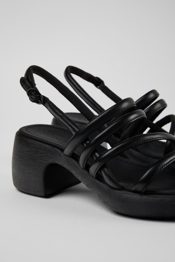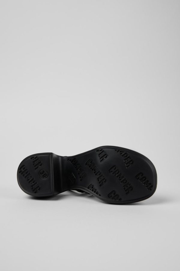 Black calfskin leather women’s sandals with OrthoLite® Recycled™ footbed and XL EXTRALIGHT® EVA outsoles.