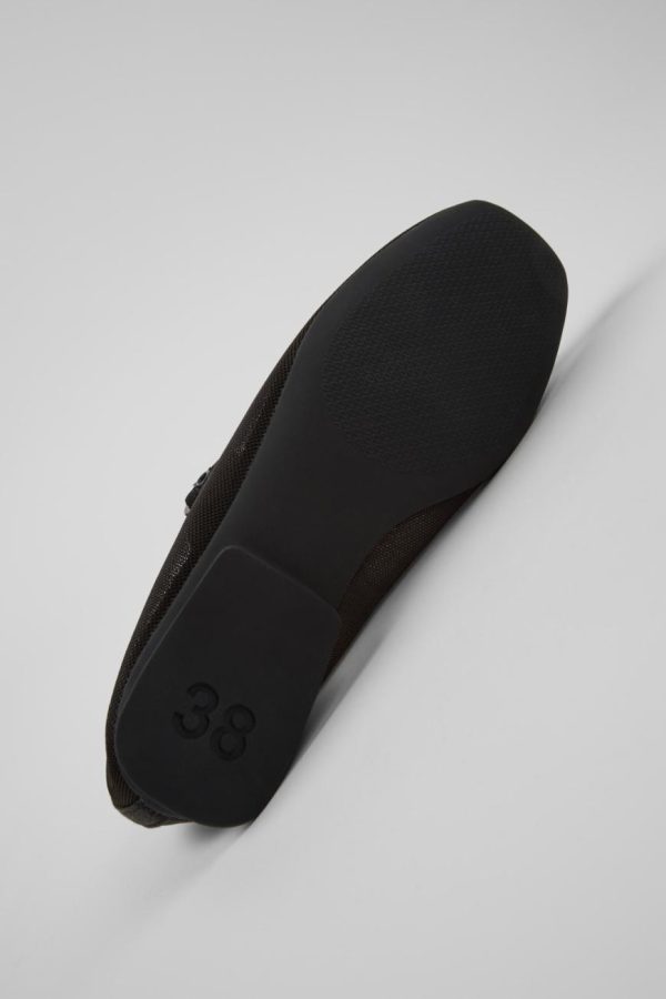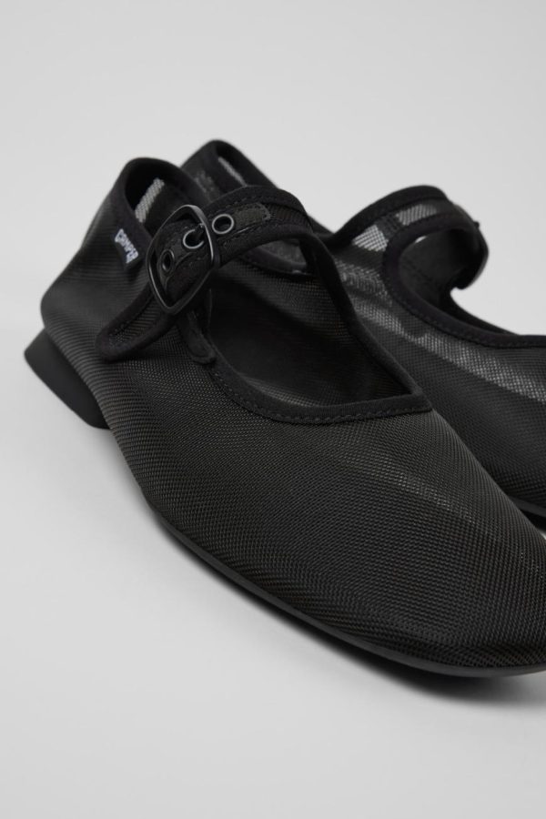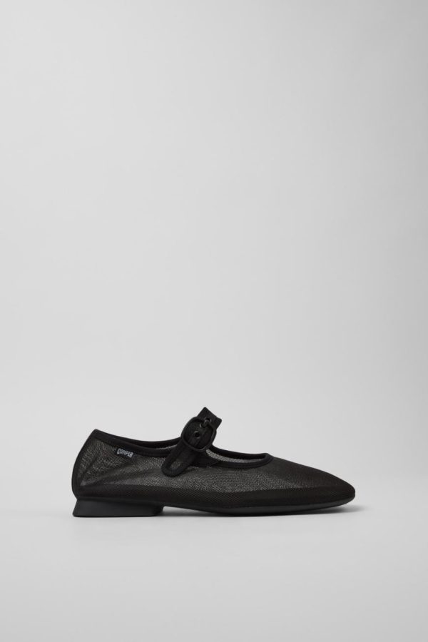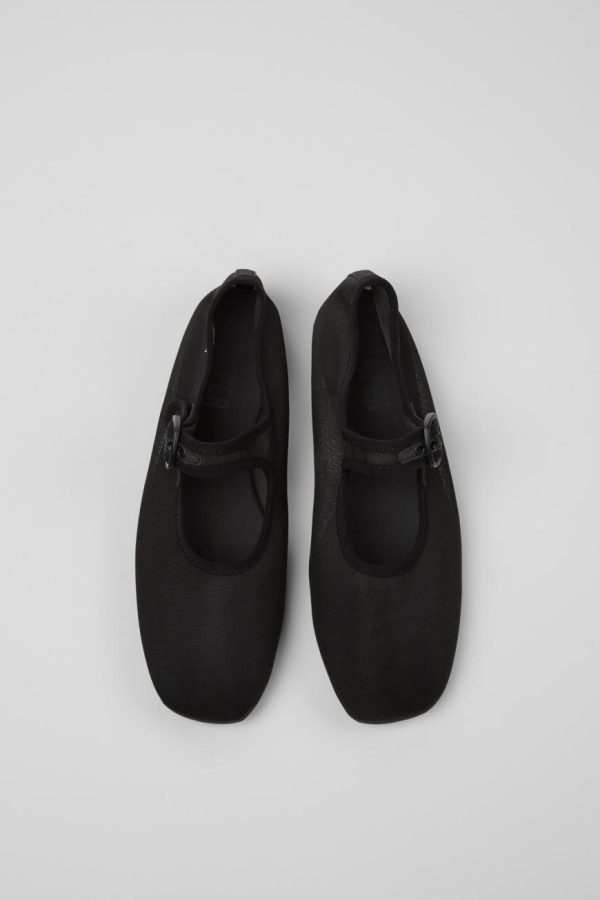 Black recycled PET women’s shoes with OrthoLite® Recycled™ footbeds and recycled TPU outsoles (20% recycled).