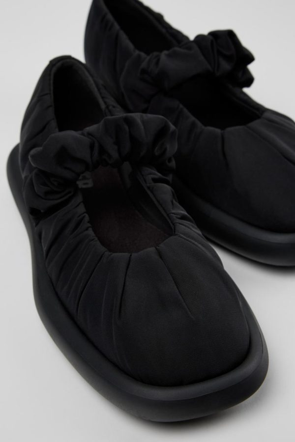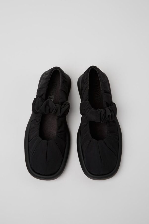 Black recycled PET women’s ballerina with OrthoLite® Recycled™ footbed and XL EXTRALIGHT® EVA outsoles.