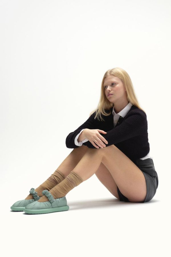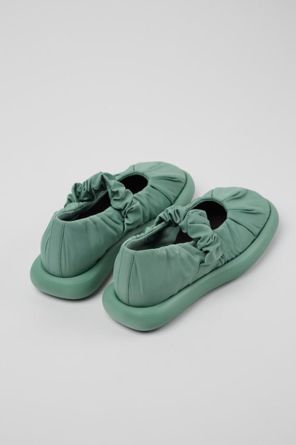 Green recycled PET women’s ballerinas with OrthoLite® Recycled™ footbed and XL EXTRALIGHT® EVA outsoles.