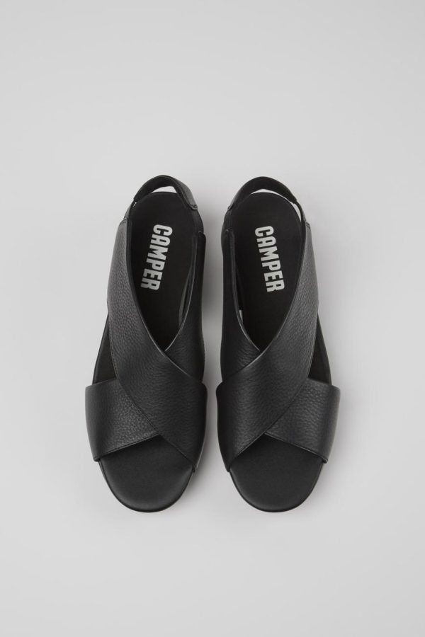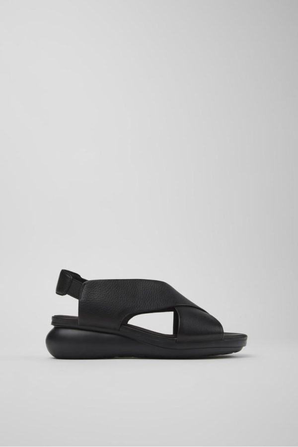 Black women’s elastic calfskin leather sandal with EVA outsole.