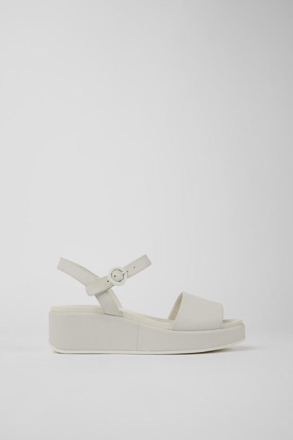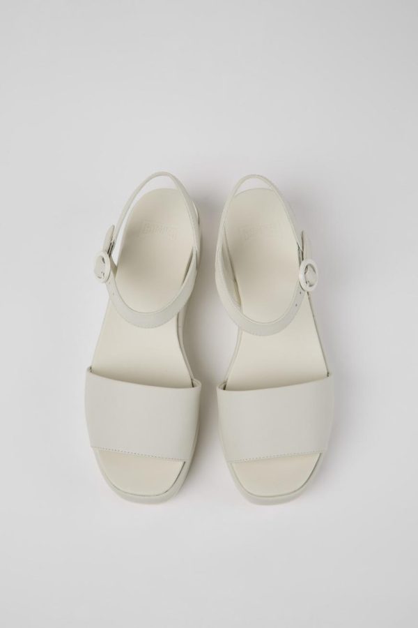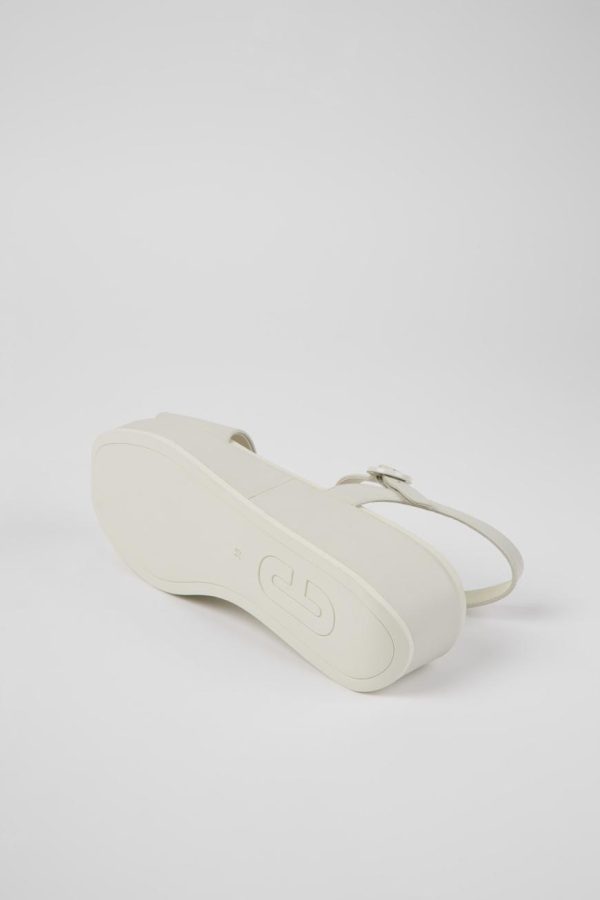 White leather women’s sandals with non-removable PU footbeds and PU outsoles.