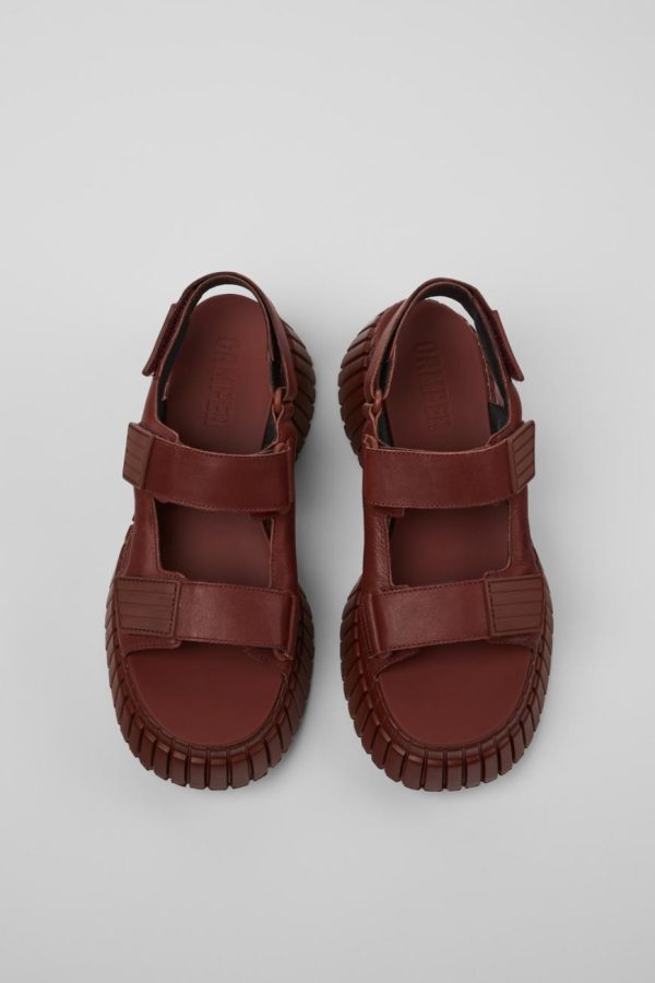 Red calfskin leather women’s sandal with EVA footbed and hook & loop system.