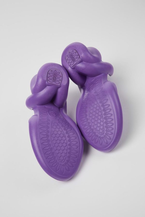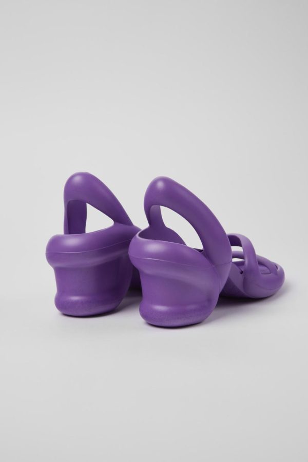 Purple unisex heeled sandals with direct injection construction, EVA footbeds, and XL Extralight® Organix™ 3.0 outsoles with 30% biocircular components.
