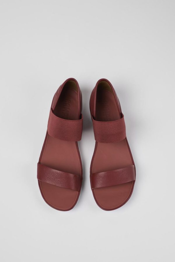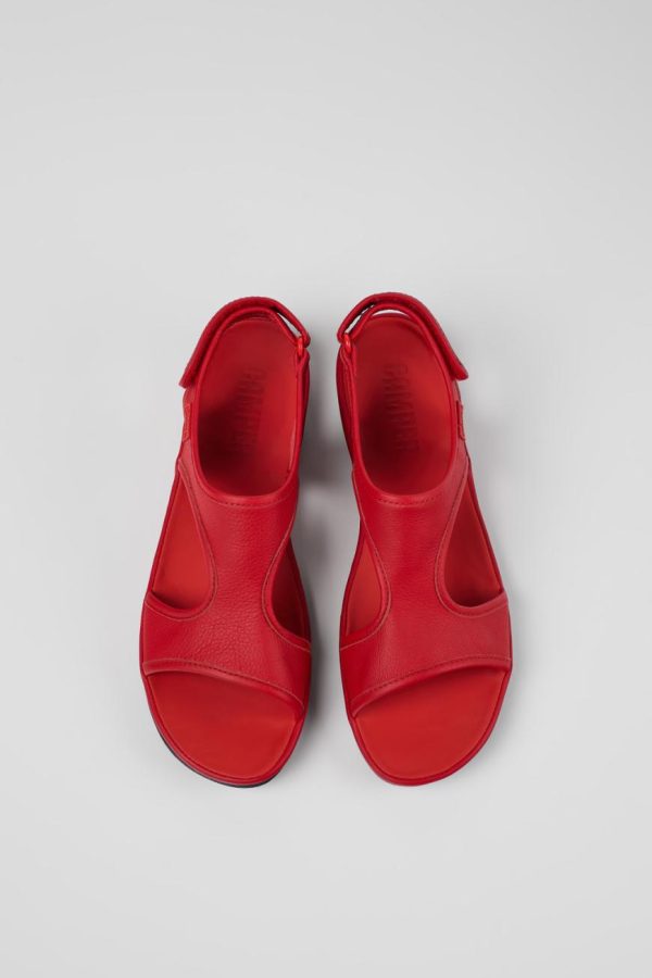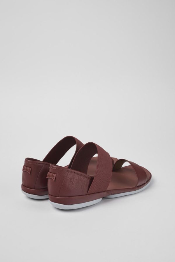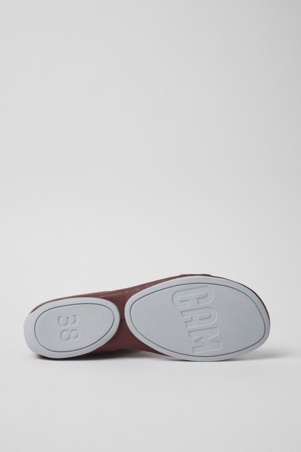 Red leather women’s Mary Janes with leather and recycled polyester linings, EVA footbeds and rubber outsoles.