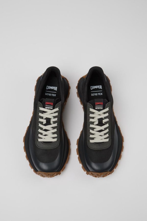 Black textile women’s sneakers with GORE‑TEX ePE membrane, OrthoLite® Recycled™ removable footbeds and Vibram® Outsoles (30% rubber, 70% EVA).