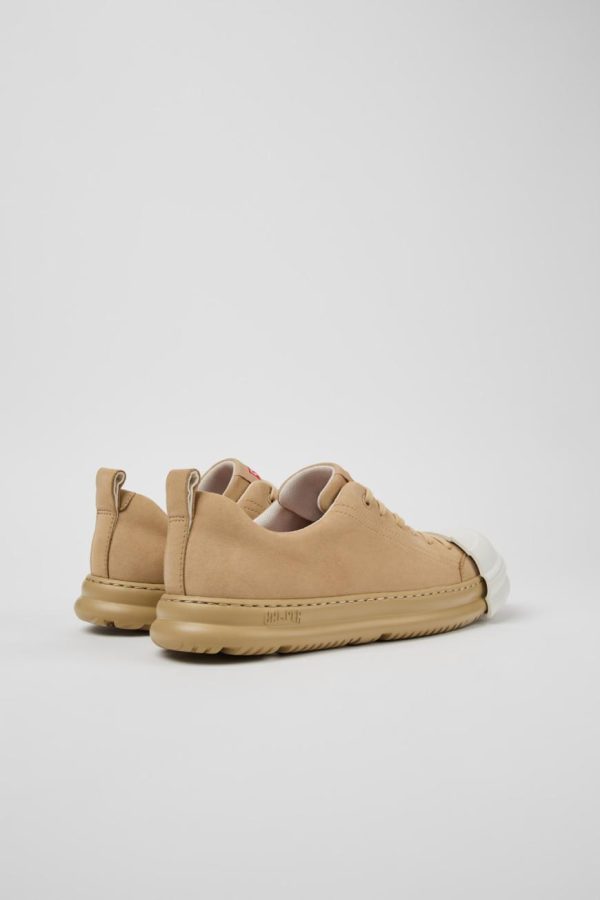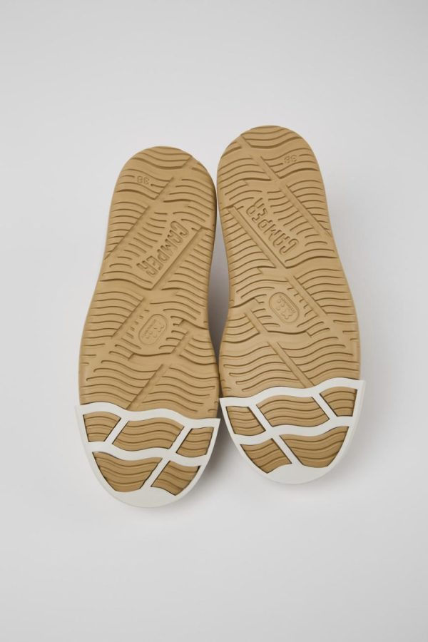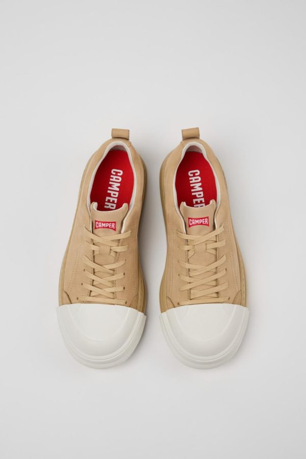 Beige nubuck women’s sneaker with PU footbed and EVA outsole (20% recycled).