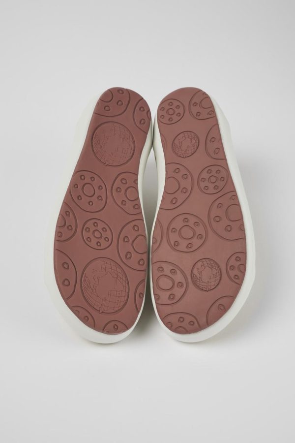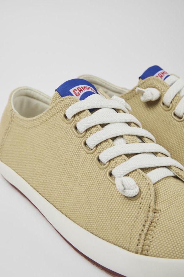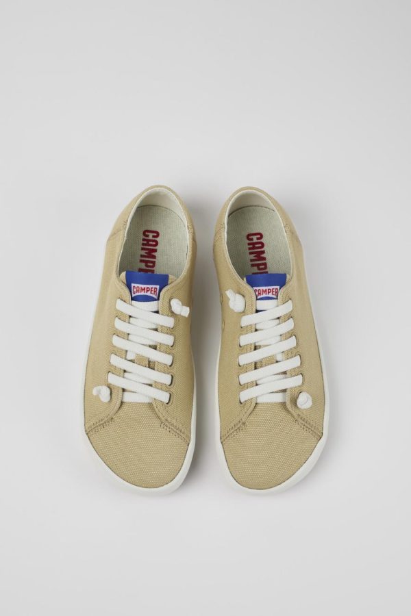 Beige women’s sneakers with recycled cotton, recycled OrthoLite® footbeds, and 100% rubber outsoles.