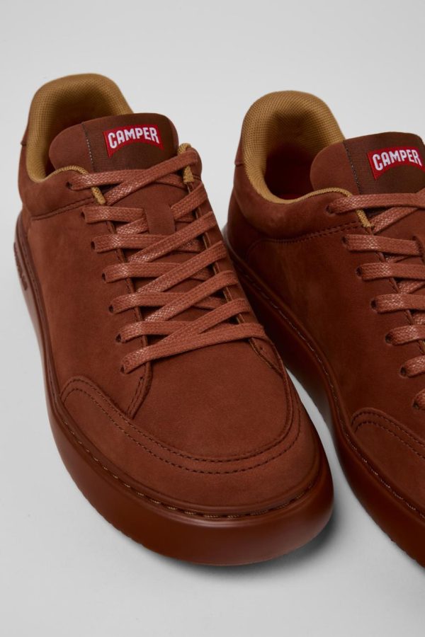 Red nubuck women’s sneakers with OrthoLite® Recycled™ removable footbeds, and XL EXTRALIGHT® Organix™ 3.0 outsoles (30% bio-circular compounds).